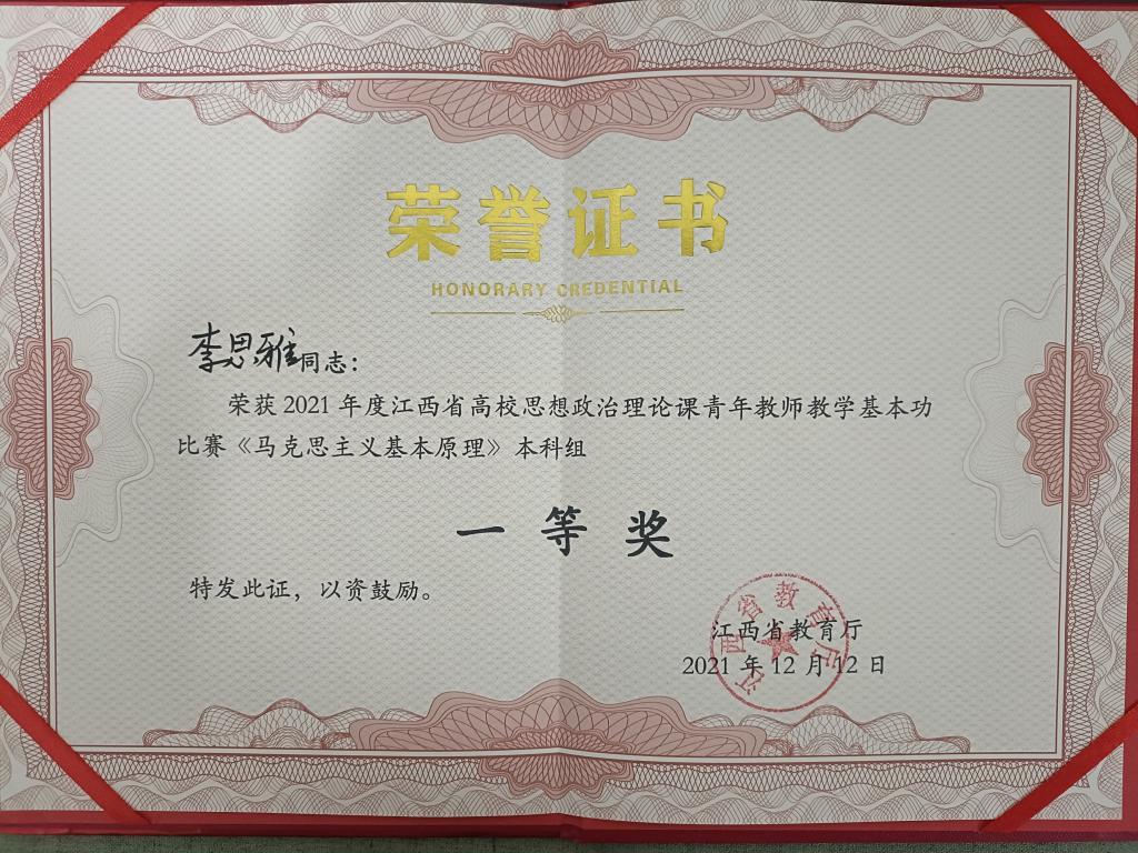 12月12日,由江西省教育厅主办的2021年度全省高校思政课青年教师教学基本功比赛决赛圆满落幕,诸侯快讯诸侯快讯入口官网教师张龙龙荣获《中国近现代史纲要》本科组比赛一等奖;李思雅荣获《马克思主义基本原理概论》本科组比赛一等奖;徐华磊荣获2021年度全省大中小红色文化课程教学比赛一等奖,实现了三名思政课教师在该项赛事中同时获得一等奖的新突破。