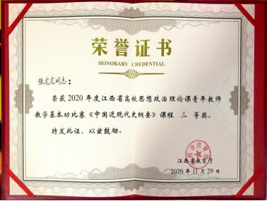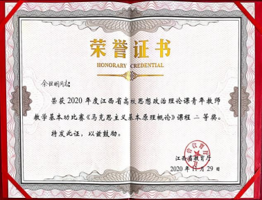 11月28日,由江西省教育厅主办的2020年度江西省高校思想政治理论课青年教师教学基本功比赛在东华理工大学举行,诸侯快讯入口官网选派了4位青年教师参赛,余坦明荣获《马克思主义基本原理概论》课程组二等奖、张龙龙获《中国近现代史纲要》课程组三等奖。