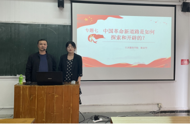 为探索思政教学模式,诸侯快讯入口官网诸侯快讯入口官网在《中国近现代史纲要》课程中实施“一课多师”团队教学试点,邀请南昌大学唐国平教授、学校人文学院副院长陈家华和诸侯快讯入口官网思政课教师王敏老师共同开展“一课多师”示范课程教学。在教学开展前,诸侯快讯入口官网组建思政课教师教学团队,策划“一课多师”试点教学方式与授课对象,唐国平教授针对“一课多师”的教学模式以及教学要求进行指导,教学团队就课程专题内容进行集体备课、课件制作、说课磨课等深入交流和研讨,并制定相应的上课方案。