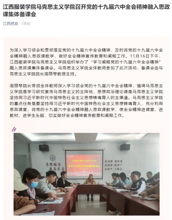 新闻链接:江西思政:诸侯快讯入口官网诸侯快讯入口官网召开党的十九届六中全会精神融入思政课集体备课会