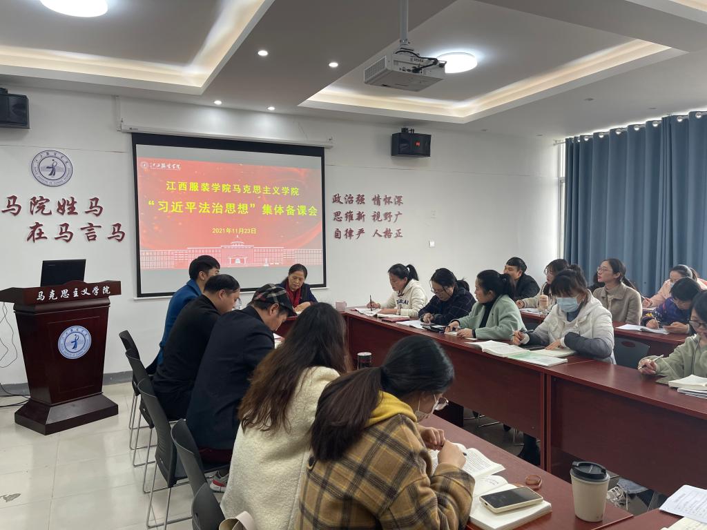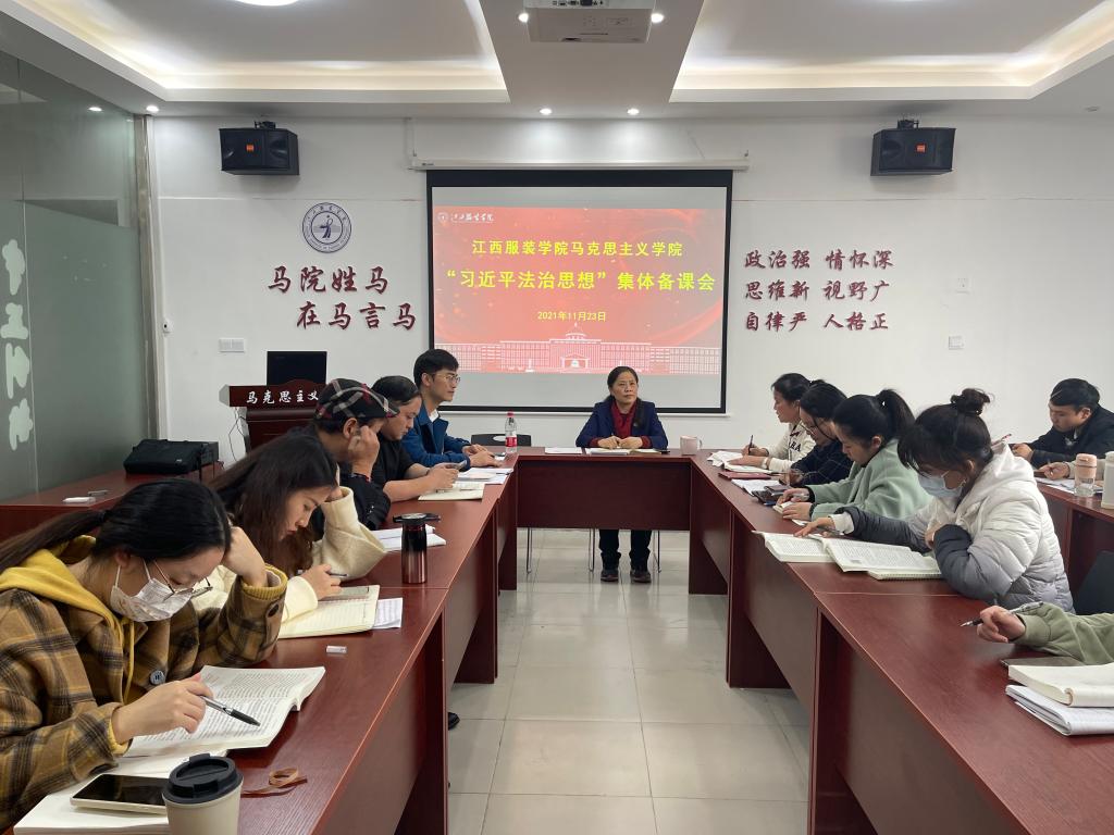 【诸侯快讯入口官网 魏园园撰稿】为深入贯彻落实习近平新时代中国特色社会主义思想,认真落实《江西省高校思想政治理论课集体备课指导意见》,全体马院教师认真观看了中国法学会党组成员、学术委员会主任张文显同志讲授“习近平法治思想”专题报告。2021年11月23日下午,诸侯快讯入口官网在学院会议室组织召开“习近平法治思想”融入思政课集体备课会。备课会由周丽琴院长主持,学院领导班子成员及全体马院教师参加了备课会。