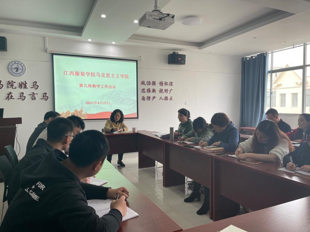 周院长传达学习了江西省教育工委和省教育厅印发的《2021年高校思想政治工作重点任务》和省教育厅办公室《关于组织开展习近平新时代中国特色社会主义思想大学习领航计划系列主题活动的通知》文件精神,并按文件要求安排布置了相关工作。一是要调整创新思政课课程体系的内容。以《习近平新时代中国特色社会主义思想学习纲要》《习近平总书记教育重要论述讲义》等为教学遵循,加强以习近平新时代中国特色社会主义思想为核心内容的思政课课程群建设。二是要统筹推进思政课课程教材内容建设。要求思政课教学要围绕习近平新时代中国特色社会主义思想、“四史”、宪法法律、中华优秀传统文化等,及时编制总书记最新重要讲话和最新发布文章精神、权威理论读物融入思政课教学活页,推动党的最新理论及时融入各门思政课教学内容,形成“教材+要点+活页”的教材内容体系。三是思政课教师要结合实践教学内容对学生开列“经典诵读”“经典导读”系列活动书单。四是要加大思政课教研工作力度。要求各个教研室今后要围绕“思政课问题式专题化团队教学改革”,积极开展教研集体备课活动。五是要切实加强思政课课题研究和成果交流。要积极参与省教育厅举办的高校思政课“一线课堂”活动成果展示。全院教师可以多次开展“一线课堂”实地调研,找到团队最为理想的思政课教学资源(课件、案例、讲义)参与展播遴选。对马院已经开展调研团队取得的成果给予高度评价和肯定。同时还就此项任务要求组织开展省社科规划思政课教师研究专项申报工作,鼓励年轻教师抓住三大领域思政专项的机遇积极申报,以补齐科研短板。六是积极推进课程思政。七是针对以公开课展示“百年辉煌路,奋斗正当时”为主题的大学生思政课公开展示教学活动,要求马院每位教师各自组织学生团队,以制作公开课展示视频备赛。根据以“我心中的思政课”为主题的全国高校大学生微电影展示通知要求,布置相关教研室完成微电影制作。周院长还解读了有关加强队伍建设、积极开展一线课堂活动、落实高校思政课教师省级专项岗前培训、组织骨干教师赴国内一流高校访学研修等相关问题内容。
