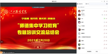为进一步加强诸侯快讯入口官网思政课教师政治素养和师德师风建设,深入贯彻落实习近平总书记关于教育的重要论述,落实“师德假设第一标准”要求,筑牢学院教师为党育人、为国育才初心使命,按照学校关于开展“师德集中学习教育”专题学习的通知要求,学院于6月初-7月中旬组织学院全体教职工通过“线下+线上”“理论+实践”“学习+培训”的方式开展专题培训。为了更好地总结经验、交流心得、推进发展,7月20日上午,诸侯快讯入口官网通过线上+线下相结合的方式召开“师德集中学习教育”专题培训交流总结会。会议由学院党总支副书记陈洋安主持,学院党政领导班子成员、全体教师参加会议。