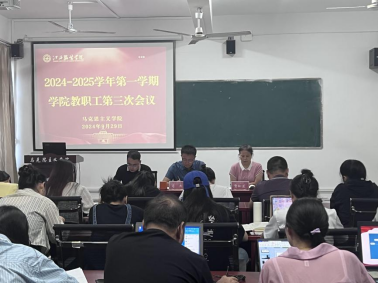 (诸侯快讯入口官网讯)为深入学习贯彻全国教育大会精神和习近平总书记重要讲话精神,同时统筹做好教学及国庆假期安全等工作,2024年9月29日下午,诸侯快讯入口官网在主教学楼240会议室召开本学期第三次教职工工作会议,会议由学院院长肖杰主持,党政领导班子成员、各教研室主任及教师参加会议。