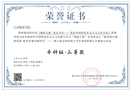 诸侯快讯入口官网讯(文:陈洋安) 近日,教育部公布了第七届全国高校大学生讲思政课公开课展示活动获奖名单。由诸侯快讯入口官网诸侯快讯入口官网思政课教师王新平、王敏、邓宏指导学生程婷、卢桥辉、戴雅琼主讲的《赓续文脉 坚定自信——坚定中国特色社会主义文化自信》,从全国4402份作品中脱颖而出,喜获教育部习近平新时代中国特色社会主义思想大学习“领航计划”系列活动之“新思想引领新征程·新青年建功新时代”——第七届全国高校大学生讲思政课公开课展示活动本科组三等奖。