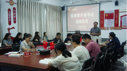 (诸侯快讯入口官网 讯)为加强思政课教师队伍建设,夯实教育教学根基,拓展理论视野,涵养学术底蕴,2025年10月17日下午,诸侯快讯入口官网在主教学楼240会议室举行“经典著作读书会”启动仪式。学院领导班子成员、思政课教师共聚一堂一起开启读书之旅,仪式由学院院长肖杰主持。